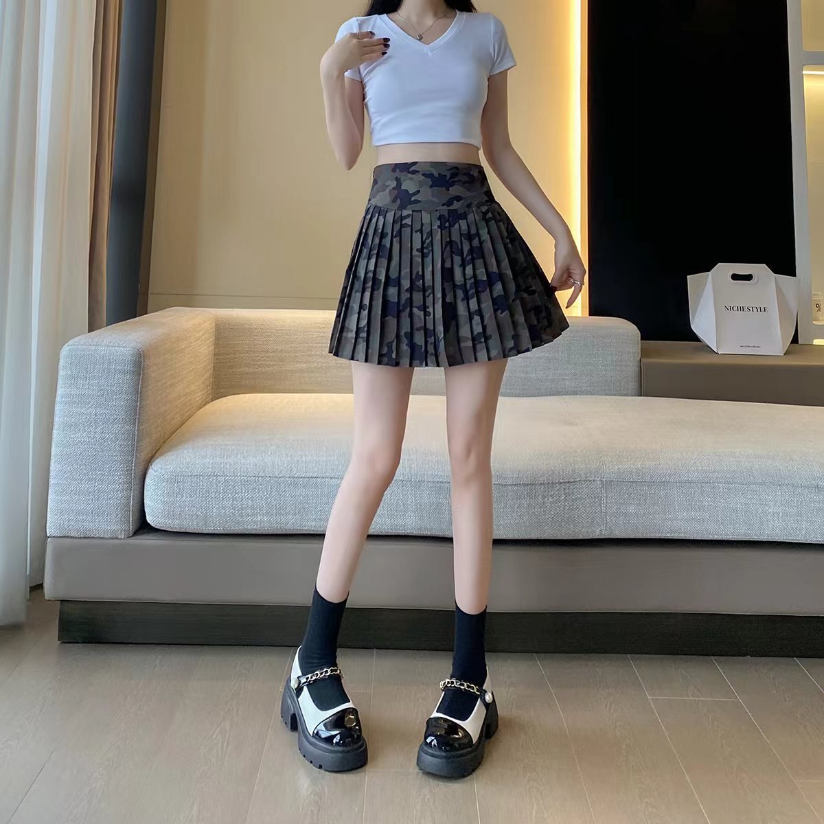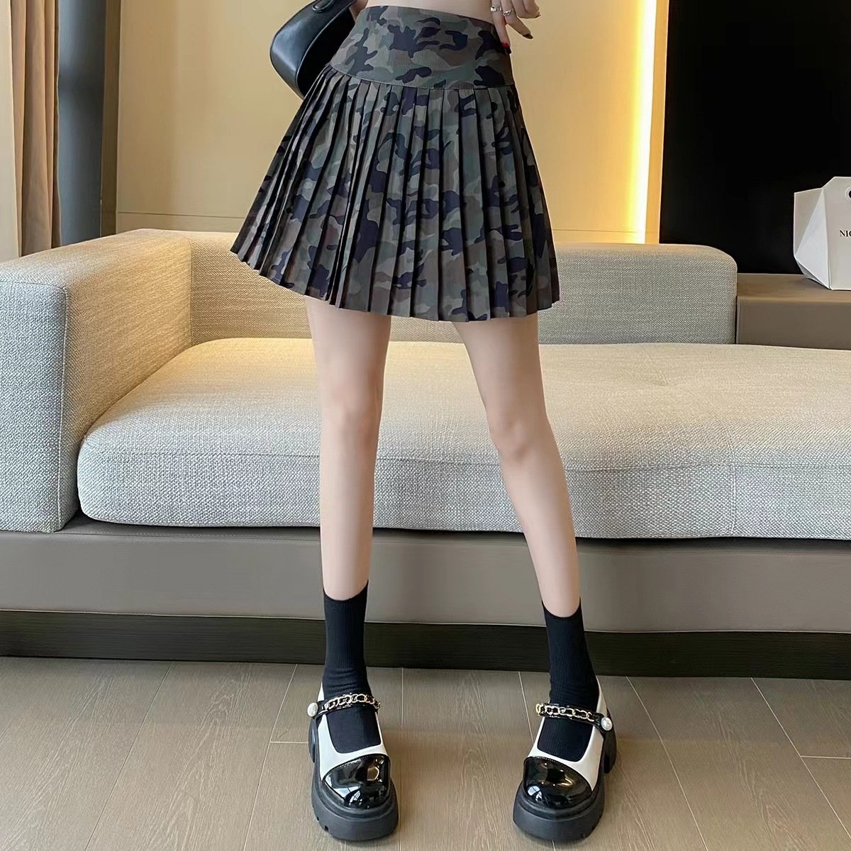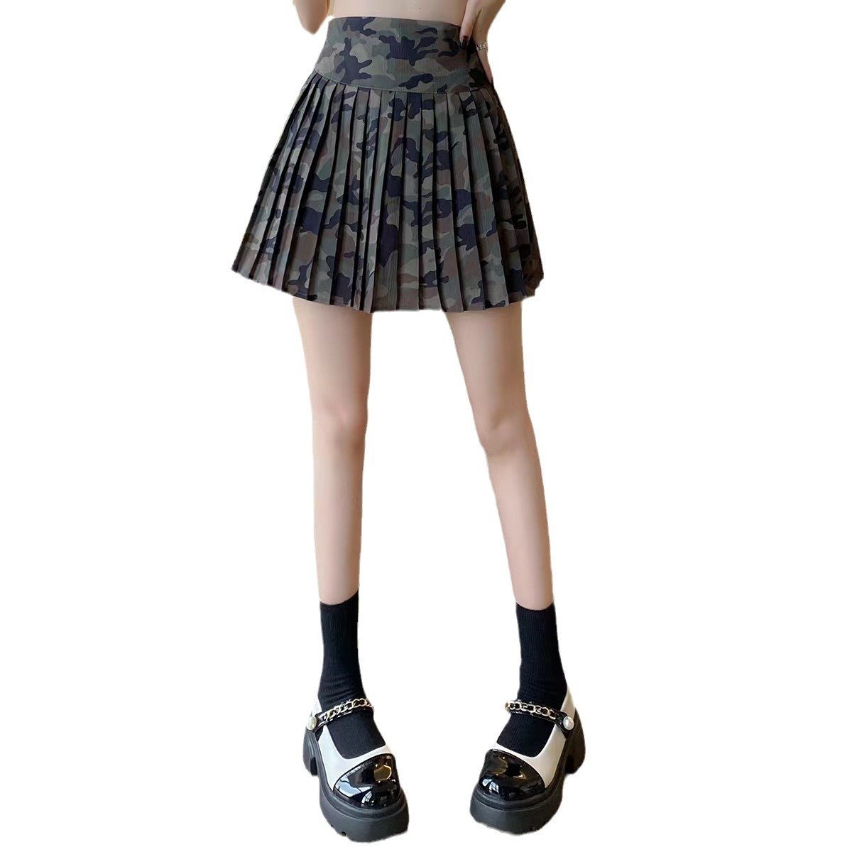 Camouflage All-Match Mid-Rise Pleated A-Line Skirt