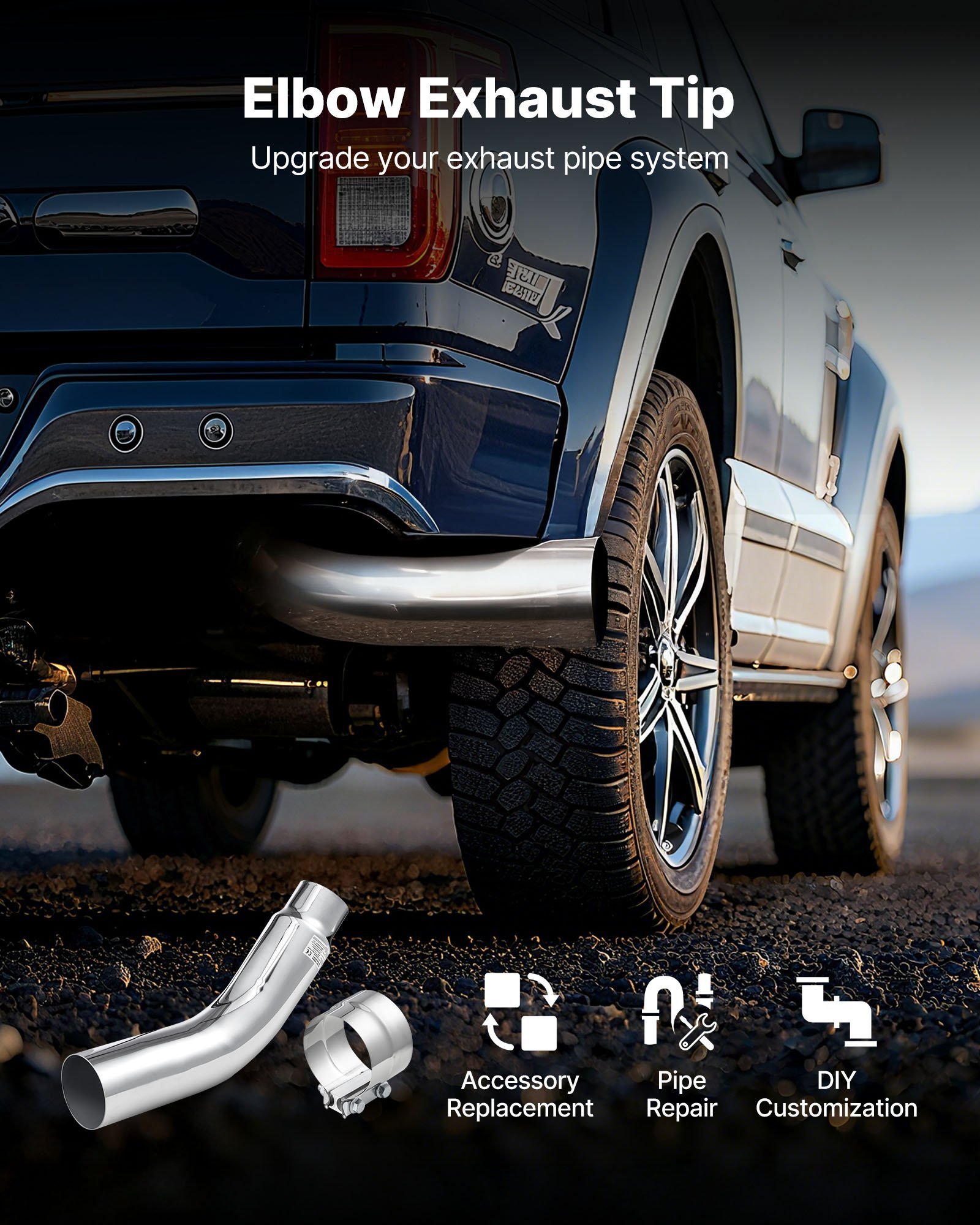 Universal Exhaust Tip: Our elbow exhaust tip adopts a silver-finish design for a sleek visual. It fits most exhaust systems and is designed for DIY with easy replacement, repair, and custom upgrades, meeting your driving needs and creative mods