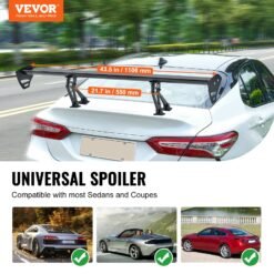 Universal Spoiler: Our rear spoiler is compatible with most sedans and coupes, with a standard spoiler length of 43.3″ / 1100 mm and a distance of 21.7″ / 550 mm between the two brackets. You don’t need to worry about this spoiler not matching your beloved car.