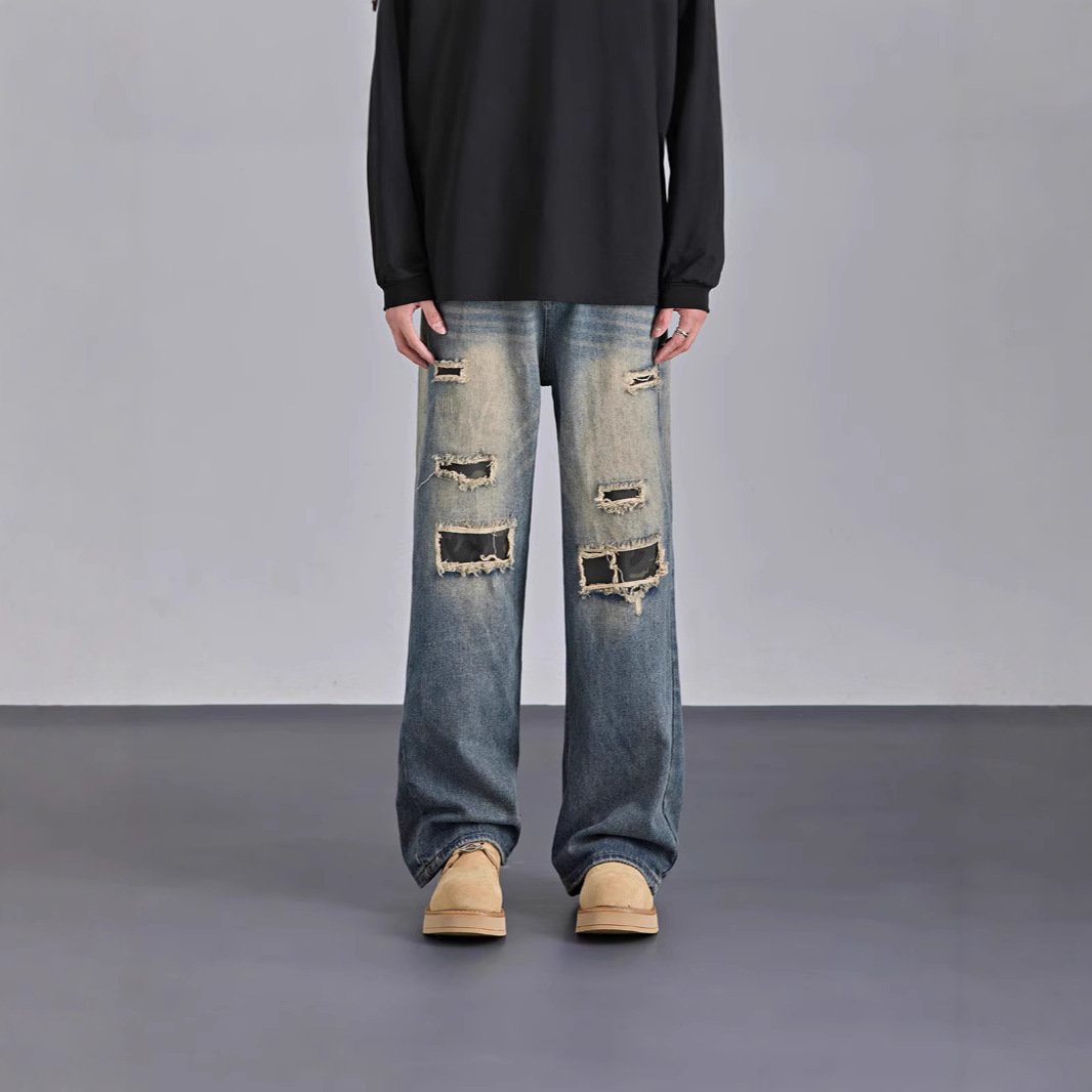 Mens American-style Streetwear Camouflage Ripped Jeans