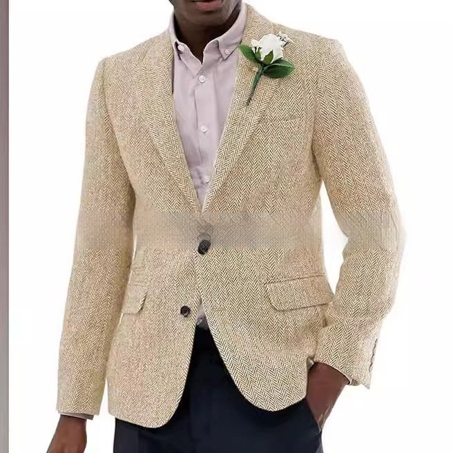 Mens Brown And Gray Herringbone Wool Suit Jacket