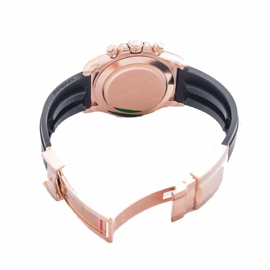 This Rolex Cosmograph Daytona Everose Gold Ivory Dial 116515LN-0014 Replica is a high quality watch. It features a 904L stainless steel case with a rose gold color and a black bezel. The sapphire crystal is 40.00 mm in size and 12.40 mm in thickness. The rubber bracelet is adjustable and has a black color with a 904L stainless steel folding clasp in rose gold. The ivory dial has stick and dot indices with 904L stainless steel stick hands. The movement is an automatic caliber 4130 with a 60-hour power reserve and a precision of (-3/+3 sec/day) within COSC certification limits.