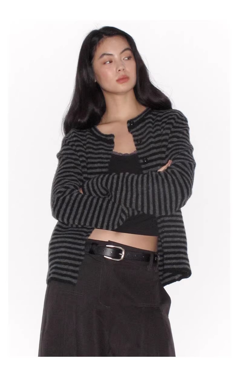 Striped Turtleneck Knit Sweater Base Layer Top