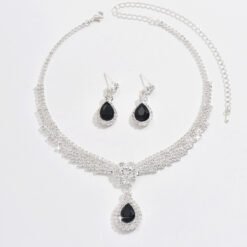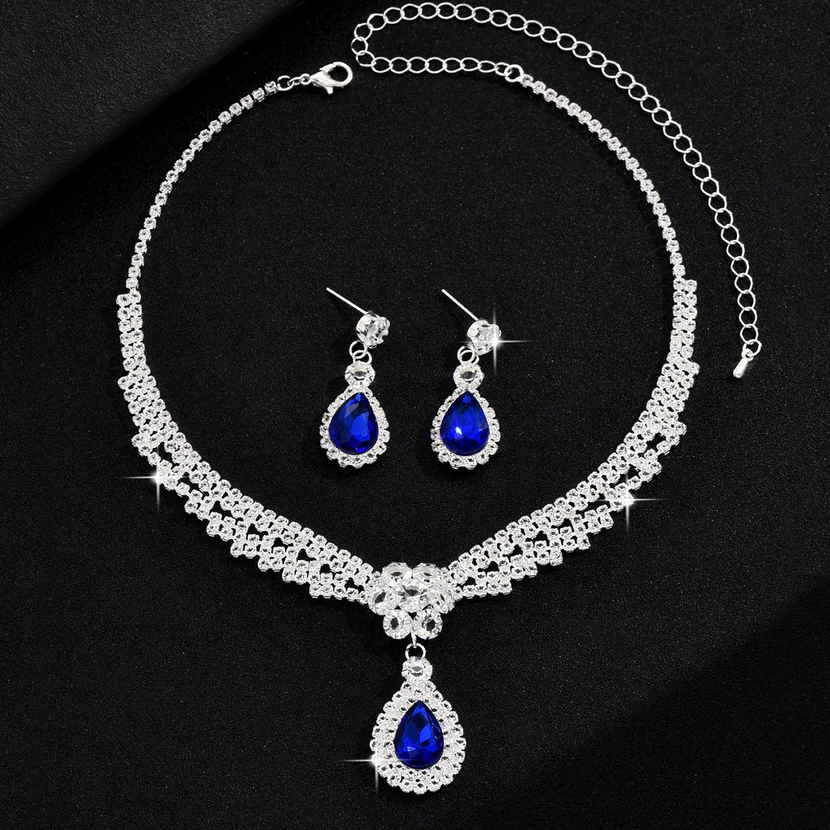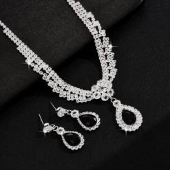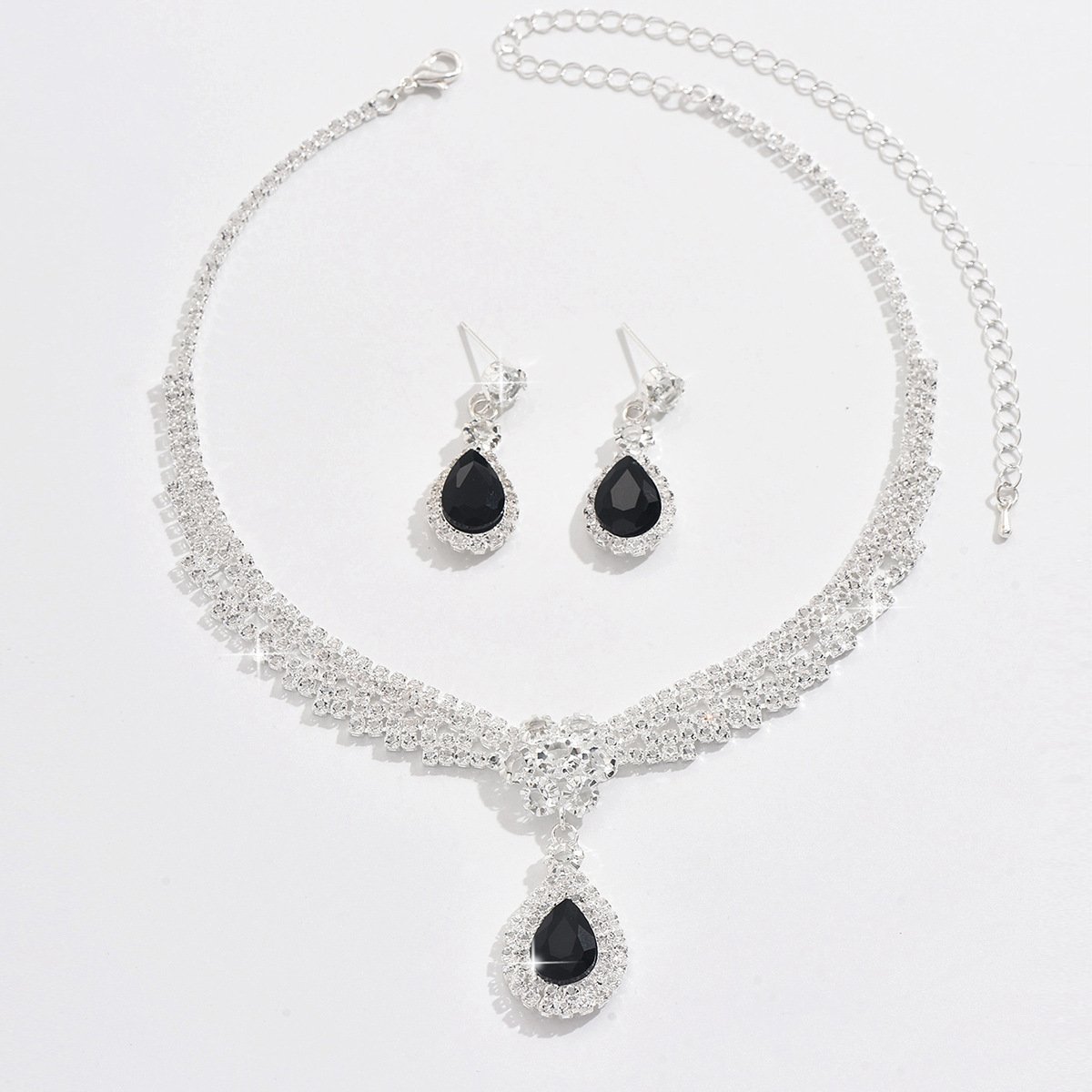 Stylish And Chic Diamond-studded Teardrop Flower Necklace And Earring Set