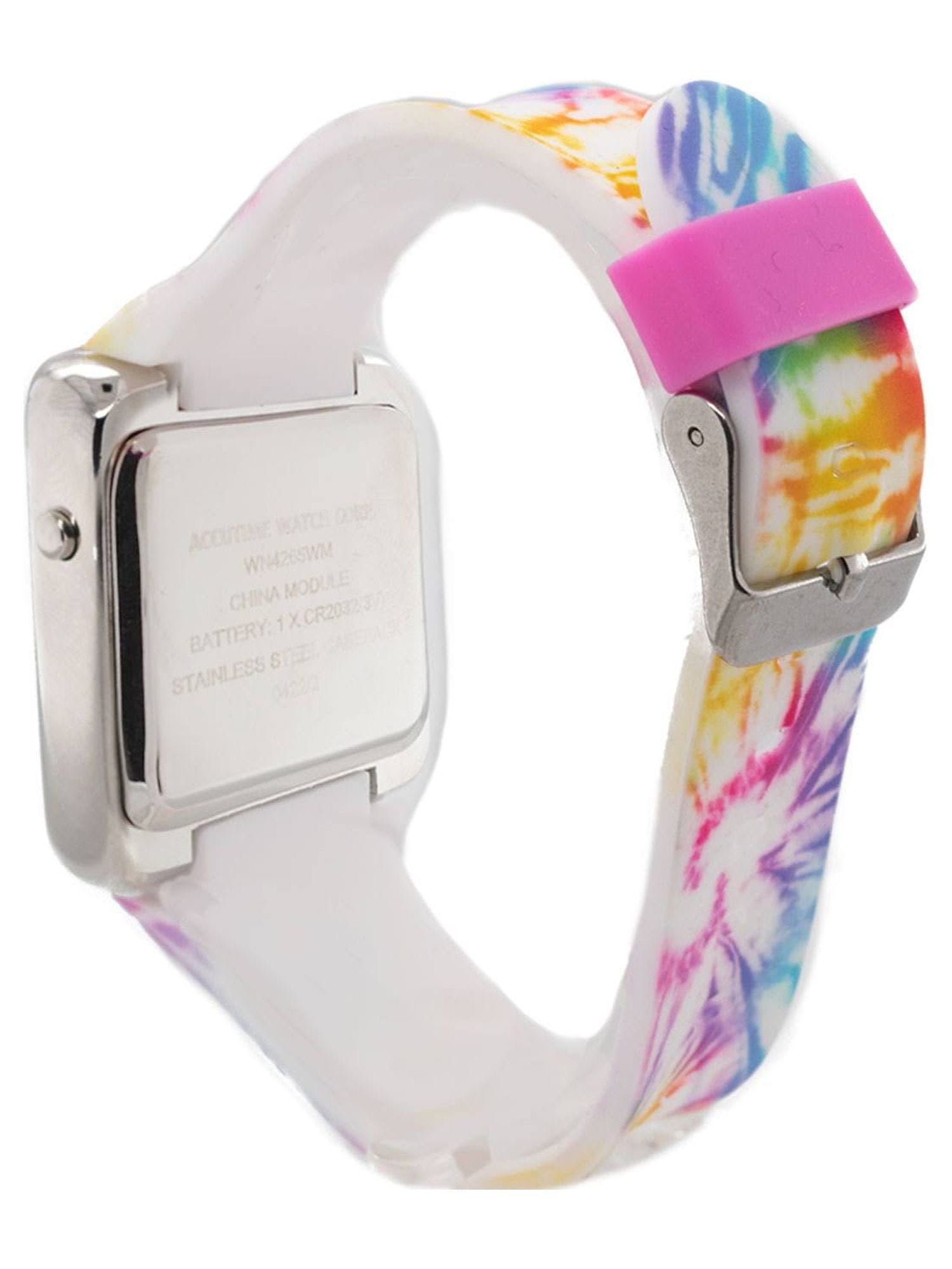 Wonder Nation Kid’s Adult LED Watch with Pink Tie Dye Strap – WN4265WM. Watches don’t just tell time anymore – they tell stories. Designed to adapt to your daily life, style and needs. Every moment of your life is precious, and your time is valuable. Our attention to detail is reflected in our craftsmanship from the mechanics to the finish, as we know that our customers will not compromise on style or substance. Each watch is carefully designed and crafted with quality materials. This watch is water resistant and can withstand splashes or brief immersion in water, but not suitable for swimming or bathing.